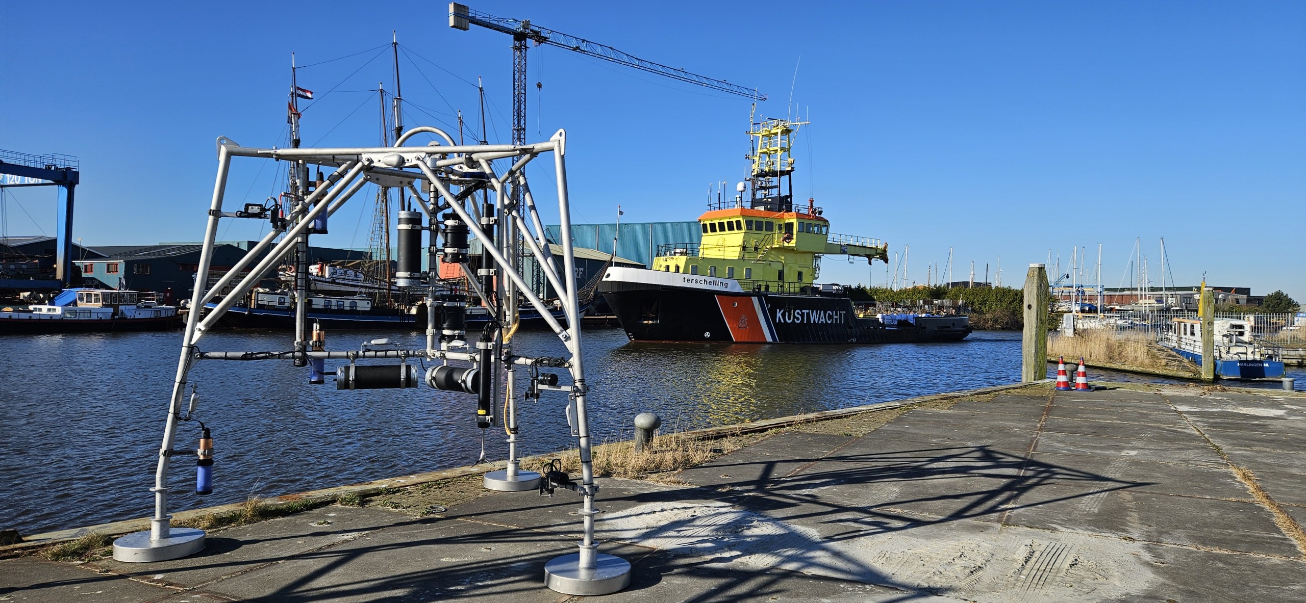 Rijkswaterstaat previously reported on the research into the effects of sand extraction near Ameland. The data for this study is collected using three measuring frames equipped with advanced measuring instruments. Each frame is placed on the seabed, at a depth of 25-30 meters, for approximately six weeks. The instruments collect data autonomously and store it internally. After six weeks, the frames are hoisted up to read out the data, change batteries, and clean the equipment.